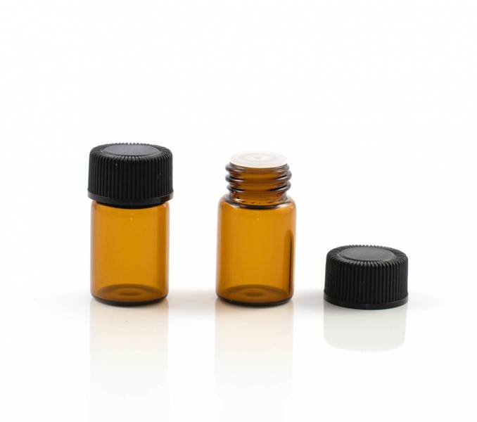 2ml brune oljeflasker med sort kork. Perfekt å ha i nøkkelringvesken og ikke minst - perfekt til oljeprøver til venner og familie!