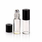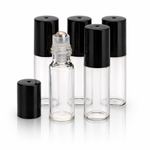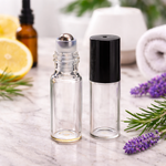 Rollerflasker 5 ml klare med sort kork til eteriske oljer (5-pk)