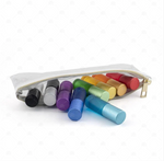 Disse 5 ml deluxe frostede rollerflaskene i flere farger leveres med premium rollerkuler i rustfritt stål, metalliske korker og et praktisk, gjennomsiktig reiseetui med glidelås. Perfekt for å vise frem favorittoljene og -blandingene dine – hjemme eller på farten.