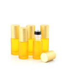 Contents: Set of 5 Frosted Glass Roller Bottles, Premium Stainless Steel Rollers and Metallic Caps.