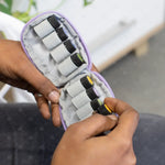 The lightly padded neoprene construction protects the vials from damage or degradation from light and the sturdy elastic straps inside secures the vials firmly in place. Convenient for travel and for quick demonstration or ideal for sampling .